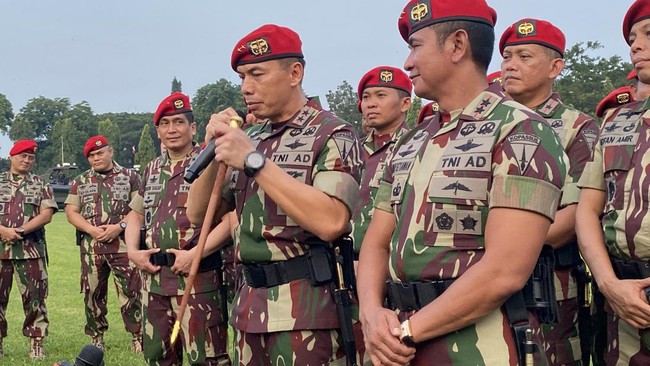 "Tadi dibilang modern adalah kita diperlengkapi dengan perlengkapan alutsista yang saat ini sedang kita modernisasi dari tahun ke tahun. Mudah-mudahan ada beberapa perlengkapan yang khususnya, tentunya bagi para prajurit, baik di parako, sandi yuda, maupun gultor bisa kita perlengkapi," kata Mayjen Deddy kepada wartawan di Makopassus, Cijantung, Jakarta Timur (Jaktim), Jumat (28/4/2023).