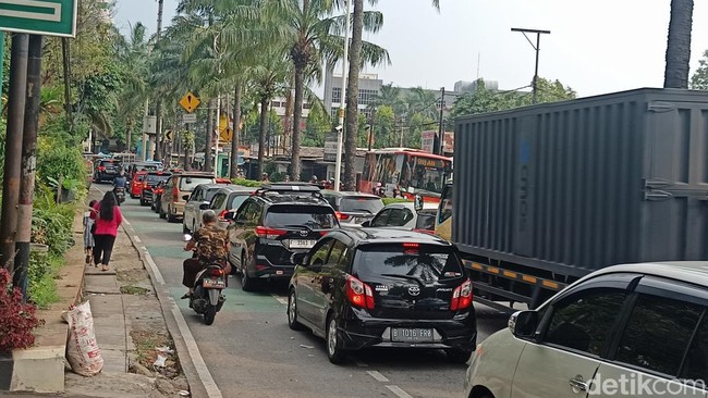TMC Polda Metro menginformasikan antrean kendaraan juga mengular di pintu barat menuju Ragunan. Pengendara didominasi roda dua.