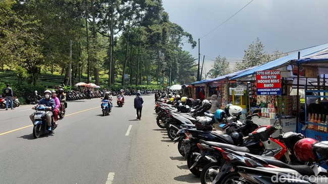 "Hambatan arus juga terjadi banyak pengendara roda dua berhenti dan parkir di bahu jalan untuk istirahat dan menikmati perkebunan teh," kata Iman.