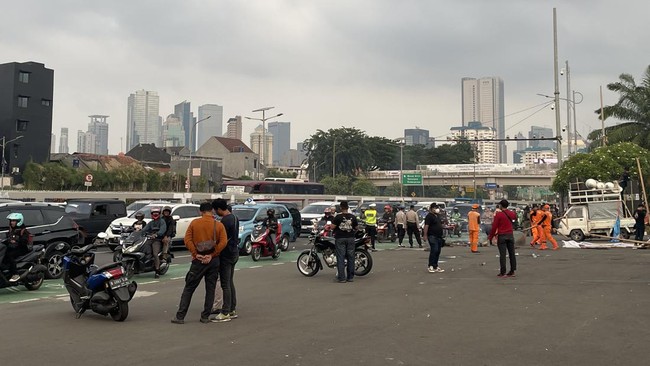 Massa dari sejumlah organisasi buruh yang berdemonstrasi di depan gedung DPR RI, Jakarta Pusat, telah membubarkan diri. Jalan Gatot Subroto arah Slipi, Jakarta Barat (Jakbar), yang sebelumnya ditutup, dibuka.