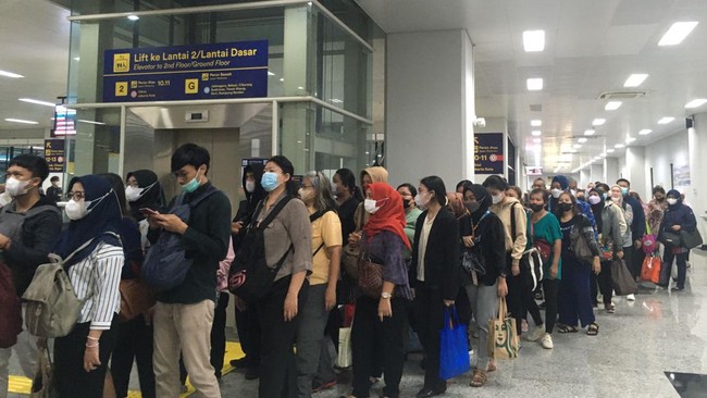 "Tumben antre panjang gini, biasanya eskalator nggak seramai ini," ucap penumpang KRL bernama Tri (28).