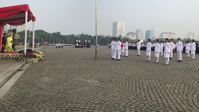 Pantauan detikcom di Silang Selatan Monumen Nasional (Monas), Jakarta, Selasa (2/5/2023), upacara diikuti oleh jajaran Pemprov DKI Jakarta serta para guru, kepala sekolah, siswa, dan tenaga pendidikan pusat kegiatan belajar mengajar (PKBM).