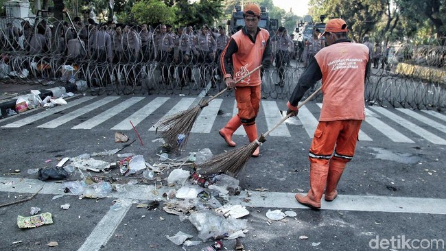 "Begitu usai aksi buruh, kami langsung bergerak membersihkan," kata Asep dalam keterangan tertulis, Selasa (2/5/2023).