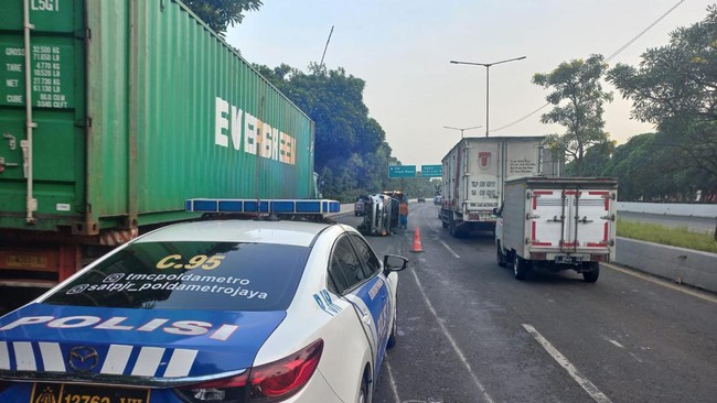Mobil Toyota Innova mengalami kecelakaan di Km 20 Tol Sedyatmo. Akibatnya, lalu lintas menuju ke Bandara Soekarno-Hatta macet.