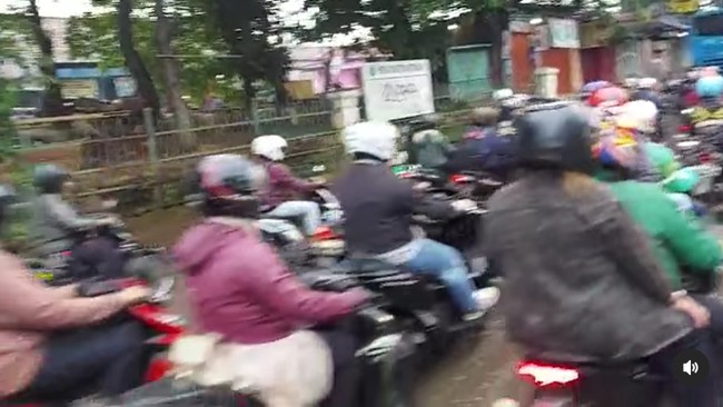 Dari video terlihat luapan air Kali Baru menggenangi sebagian ruas jalan di TL Hek. Kendaraan, terutama motor berjalan pelan saat melintasi titik genangan air.