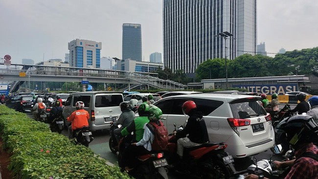 Pantauan detikcom di JPO Tegal Parang, Rabu (3/5/2023) pukul 08.22 WIB jalan arteri Gatot Subroto arah Semanggi maupun Slipi tampak macet. Antrean kendaraan terjadi dari arah Kapten Tendean dan Pancoran .