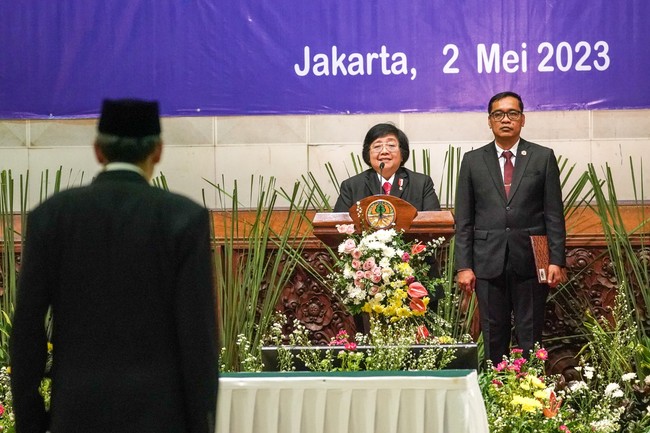 Menteri LHK Siti Nurbaya melantik Satyawan Pudyatmoko sebagai Direktur Jenderal Konservasi Sumber Daya Alam dan Ekosistem (Dirjen KSDAE) Kementerian Lingkungan Hidup dan Kehutanan (KLHK) padaSelasa (2/5). Siti meminta kepada Dirjen KSDAE yang baru melakukan perubahan tata kelola kawasan konservasi berbasis lansekap, ekosistem dan masyarakat.