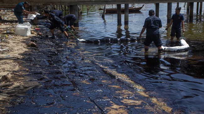 "Ada limbah tersebut tadi pagi. Ada kawan yang berprofesi nelayan kasih kabar. Pas tadi ngecek rupanya betul ada limbah minyak," kata Riski, Rabu (3/5/2023).