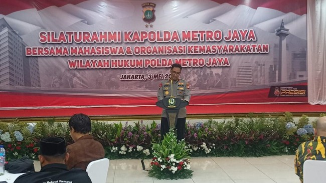 "Tentunya hal ini kita lakukan sebagai wujud kita menyambung silaturahmi untuk menjaga kondusifitas Kamtibmas Jakarta," ujar Wakapolda Metro Jaya Brigjen Pol Suyudi Ario Seto seusai acara 'Silaturahmi Kapolda Metro Jaya Bersama Mahasiswa dan Organisasi Kemasyarakatan Wilayah Hukum Polda Metro Jaya', Rabu (3/5/2023).