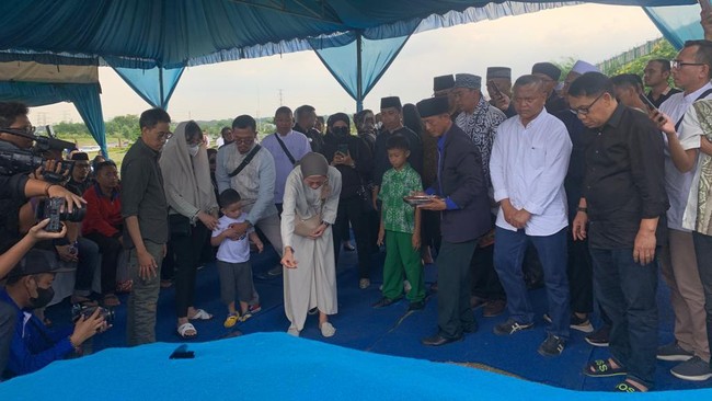 Pantauan detikcom di lokasi, Kamis (4/5/2023), jenazah M Taufik tiba di Al-Azhar Memorial Garden Karawang pada pukul 13.48 WIB. Jenazah dimasukkan ke liang lahad pukul 13.58 WIB.