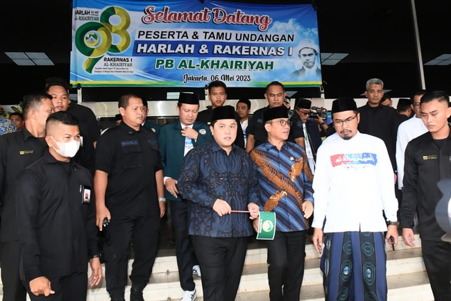 Wakil Ketua MPR Yandri Susanto bersama Menteri BUMN RI Erick Thohir menghadiri acara Harlah dan Rapat Kerja Nasional PB Al-Khairiyah di Gedung Nusantara IV, Kompleks MPR/DPR RI, Senayan, Jakarta, Sabtu (6/5). Acara yang mengusung tema 'Mewujudkan Amanah Brigjend. KH. Syam'un Melalui Peran Perkumpulan Al-Khairiyah Untuk Kemaslahatan Umat dan Bangsa' turut dihadiri Ketua Umum PB Al-Khairiyah, KH. Ali Mujahidin.