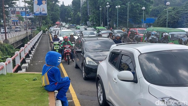 "Volume kendaraan meningkat, karena kendaraan yang keluar exit Tol Bogor semua tekuk kiri ke arah Sukasari, kan tidak bisa melalui Jl Otista," kata Galih.