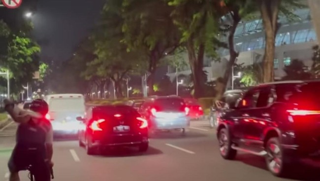 "Memberhentikan kendaraan lain di belakang kurang lebih 5 menit, mohon bantuan pengawasan lalu lintas di areal Senayan Pak Dirlantas Polda Metro," ujarnya.