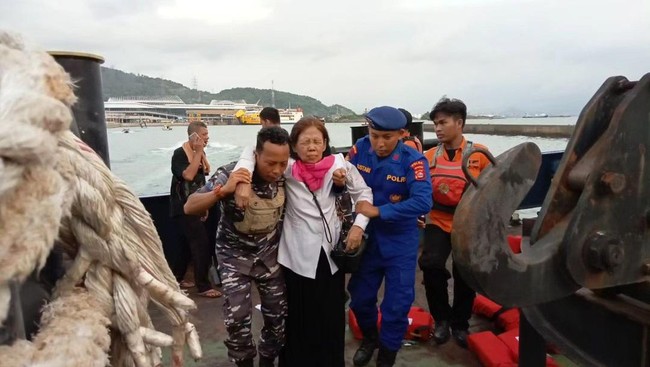 Anggota TNI, polisi, Basarnas hingga unsur lain bergerak ke arah kapal untuk mengevakuasi para penumpang. Mereka terlihat menggunakan perahu kecil atau sekoci.