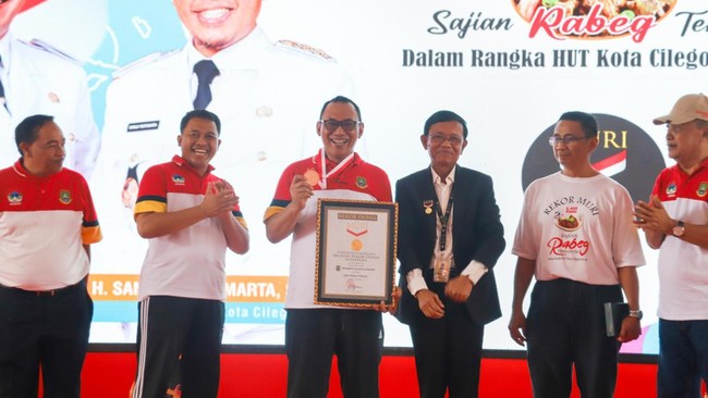 Pemkot Cilegon tercatat di Museum Rekor Dunia Indonesia (MURI) karena telah menyajikan menu rabeg sebanyak 2.400 porsi, di halaman kantor Wali Kota Cilegon, Jalan Soedirman.