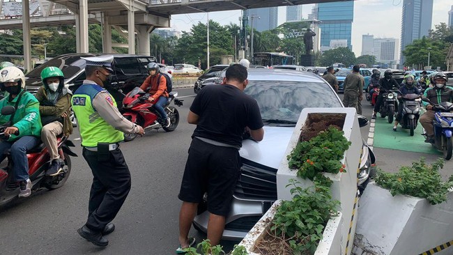 "Telah terjadi kecelakaan tunggal kendaraan roda 4 menabrak pembatas jalur sepeda di Jl Jendral Sudirman yang mengarah ke Semanggi, saat ini sedang dalam penanganan petugas, Situasi arus lalu lintas terpantau ramai cenderung padat," tulis TMC Polda Metro.