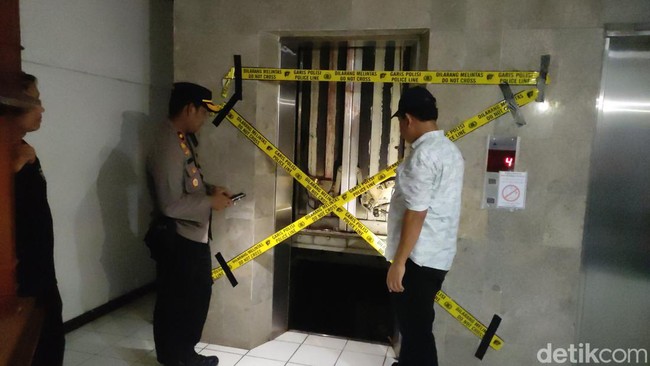 "Posisi korban saat ditemukan di batas sangkar, tapi sebagian badan korban turun ke bawah. Jadi kalau kita lihat di lift ada celah kecil di depan pintu. Kita belum tahu apa yang dilakukan korban pada saat itu, posisi korban di luar sangkar ketika ditemukan ditemukan di situ. Terjepitnya justru di atas sangkarnya itu kita masih cek korban terkena apa terbentur apa," jelasnya.