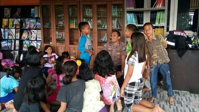 "Kebetulan saya juga kan pernah ikut pelatihan Polri tentang bahasa Inggris, jadi nyambung, diajarilah terakhir mereka minta les bahasa Inggris, kita bukalah di situ. Jadi asal datang mau les bahasa Inggris kita buat, apa yang mereka tanya kita jawab, cuma konsepnya langsung dari perpustakaan ke les bahasa Inggris," jelasnya.