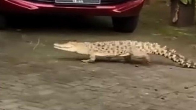 "Kejadiannya itu sebelum jam 7. Ada kelihatan (buaya) di dekat parkiran, dalam pagar," kata Hajerah.