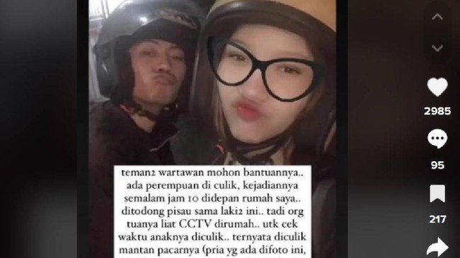 Dalam rekaman CCTV itu, tampak dua pria datang ke rumah teman korban di Jalan Kawaluyaan menggunakan sepeda motor. Pelaku memaksa korban naik ke motor. Sedangkan, teman pelaku yang mengemudikan motor tersebut. Dalam rekaman video yang beredar, korban sempat teriak meminta tolong.