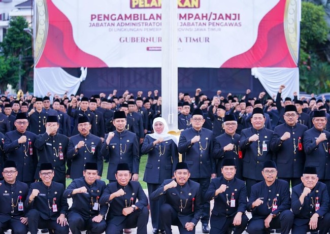 Gubernur Jawa Timur Khofifah Indar Parawansa melantik 505 orang Pejabat Administrator (Eselon III) dan Pejabat Pengawas (Eselon IV) di lingkungan Pemerintah Provinsi Jatim. Rinciannya, Pejabat Administrator sebanyak 222 orang dan Pejabat Pengawas 283 orang.
