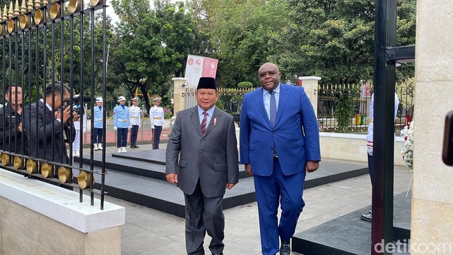 Menteri Pertahanan (Menhan) RI Prabowo Subianto menerima kunjungan Menhan Republik Kongo Jean Pierre Bemba Gombo. Kedatangan Jean Pierre disambut melalui serangkaian upacara penyambutan.