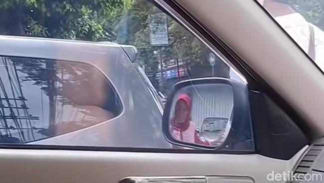 Aksi ini tak sengaja direkam oleh seseorang dari dalam mobil. Lokasinya diduga berada di Jalan Letjen Sutoyo, Kota Malang.