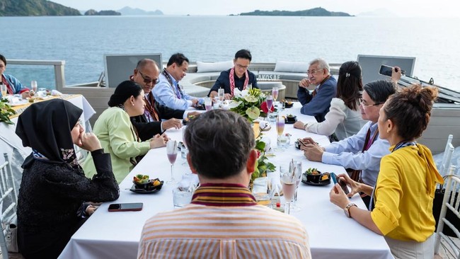 Pada kesempatan itu, Puan turut menjamu delegasi pimpinan parlemen ASEAN dengan makan malam di atas geladak kapal yang sedang berlayar. Delegasi AIPA pun merasa puas karena tak hanya dimanjakan oleh pesona Labuan Bajo, tapi juga ikut merasakan sensasi dinner di tengah laut dengan pemandangan indah.
