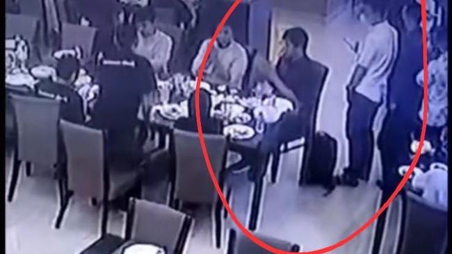 Dalam video yang dilihat detikcom, Jumat (12/5/2023), korban yang dinarasikan tengah meeting dan makan, tampak duduk di kursi ujung. Dia meletakkan tas ransel hitam miliknya di bawah meja.