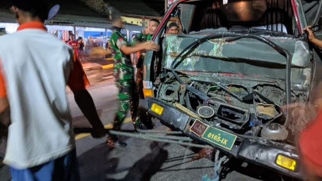 Dilansir detikBali, Sabtu (13/5/2023), truk TNI itu merupakan milik Batalion Infanteri 742/SWY. Kedua kendaraan dinas itu bertabrakan pada Jumat (12/5) malam. Akibatnya, truk penyok dan lima anggota TNI mengalami luka-luka.