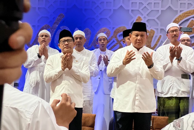 Ketua Umum Partai Kebangkitan Bangsa (PKB) Abdul Muhaimin Iskandar menghadiri acara Indonesia Bermunajat bersama Majlis Riyadlul Jannah Indonesia di Masjid Istiqlal, Jakarta, Sabtu (13/5) malam. Acara ini digelar dalam rangka doa bersama dan halalbihalal yang dihadiri Menteri Pertahanan Prabowo Subianto, para Alim Ulama dan Kiai diantaranya Habib Nabil Al Musawa dan Habib Jindan.