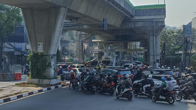 Pantauan detikcom Rabu (17/5/2023), kemacetan terjadi di semua arah. Terdengar jelas klakson kendaraan saling bersahutan meminta pengendara lain bergegas. Kendaraan roda dua terlihat saling menyalip dalam kepadatan agar bisa melintas lebih dulu.