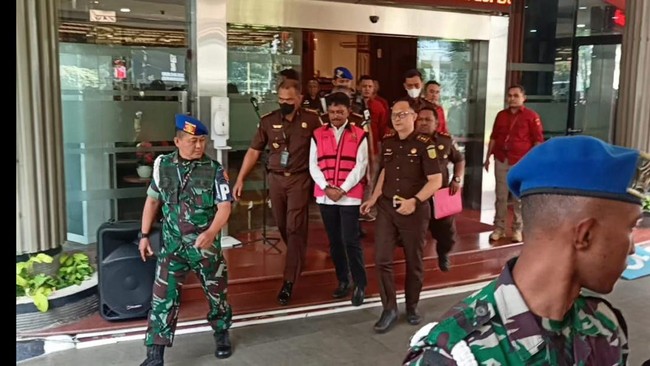 "Atas hasil pemeriksaan tersebut, tim penyidik pada hari ini telah meningkatkan status yang bersangkutan setelah dari saksi menjadi tersangka dan selanjutnya terhadap yang bersangkutan kita lakukan tindakan penahanan untuk 20 hari ke depan di Rutan Salemba Cabang Kejaksaan Agung," kata Direktur Penyidikan (Dirdik) Jaksa Agung Muda Pidana Khusus Kejagung Kuntadi dalam jumpa pers di kantor Kejagung, Rabu (17/5/2023).