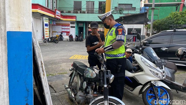 Pantauan detikcom, A yang berboncengan dengan temannya ini disetop polisi di simpang Ramanda, Jalan Margonda, Rabu (17/5/2023) pukul 16.42 WIB. Ia disetop polisi karena tidak memakai helm.