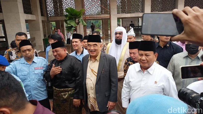 Menteri Pertahanan (Menhan) sekaligus Ketum Partai Gerindra Prabowo Subianto tiba di Masjid Istiqlal, Jakarta Pusat. Prabowo datang untuk menghadiri acara 'Silaturahmi dan Tausiyah Kebangsaan' dan pemberian bingkisan kepada fakir miskin.