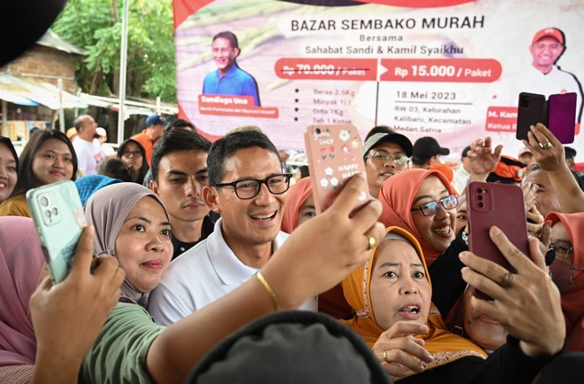 "Masyarakat sejauh ini memberikan apresiasi yang besar jika kita hadir di tengah masyarakat, terutama membantu apa yang dibutuhkan ada dua hal yaitu satu harga harga sembako, kedua berkaitan dengan lapangan kerja," kata Sandiaga dalam keterangan tertulis, Jumat (19/5/2023).