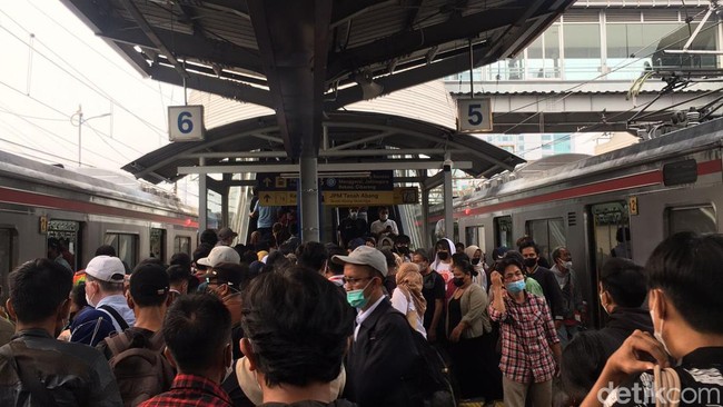 Pantauan detikcom di Stasiun Tanah Abang, Senin (22/5/2023), stasiun ramai penumpang. Para penumpang melakukan transit dari peron 2-3 menuju peron 5-6 serta sebaliknya.