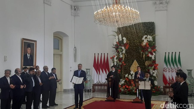 Presiden Joko Widodo (Jokowi) bertemu dengan Presiden Iran Ebrahim Raisi di Istana Kepresidenan, Bogor. Ada 10 kesepakatan yang ditandatangani oleh kedua negara.