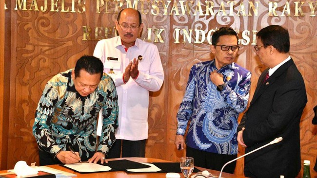 Ketua MPR RI Bambang Soesatyo melakukan serah terima jabatan Sekretaris Jenderal MPR RI dari Ma'ruf Cahyono kepada Pelaksana Tugas (Plt) Sekretaris Jenderal MPR RI Janedjri M. L Gaffar. Ma'ruf Cahyono diberhentikan karena telah memasuki masa pensiun, terhitung sejak tanggal 3 Februari 2023.