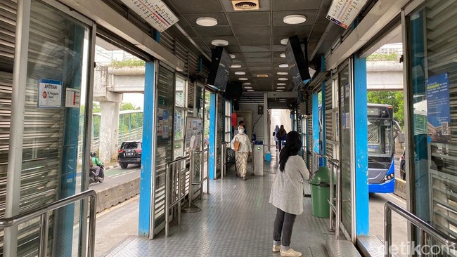 Pantauan detikcom, Rabu (24/5/2023) siang, kondisi di Halte TransJ Pasar Rumput terlihat sepi. Hanya ada 1 atau 2 penumpang saja yang menunggu datangnya bus di tempat duduk halte.