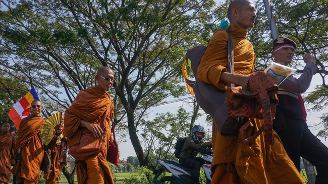 Rombongan biksu dari Thailand yang tengah menjalankan ritual thudong berupa jalan kaki menuju Candi Borobudur telah tiba di wilayah Pekalongan, Jawa Tengah. Mereka akan menginap di rumah tokoh ulama Muhammad Luthfi bin Yahya.