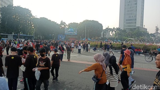 Pantauan detikcom di Bundaran HI, Minggu (28/5/2023), pukul 07.45 WIB, terlihat warga tengah berolahraga. Tampak para warga melakukan olahraga mulai dari jogging hingga bersepeda.