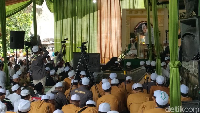 Terlihat jemaah fokus mendengarkan penyampaian itu. Namun tak sedikit pula jemaah yang mengabadikan momen Prabowo tiba di Makam Habib Munzir. Prabowo juga terlihat menyalami beberapa anggota jemaah yang berdiri di dekatnya.