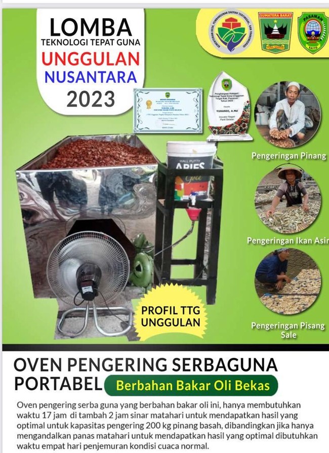 "Pemda mendukung nagari untuk mengikuti lomba Teknologi Tepat Guna Nusantara. Sebanyak 30 unit pesanan mesin oven pengering pinang ini hendak diserahkan kepada kelompok tani, agar perekonomian Pasaman semakin maju dari desa," kata Benny dalam keterangan tertulis, Kamis (1/6/2023).