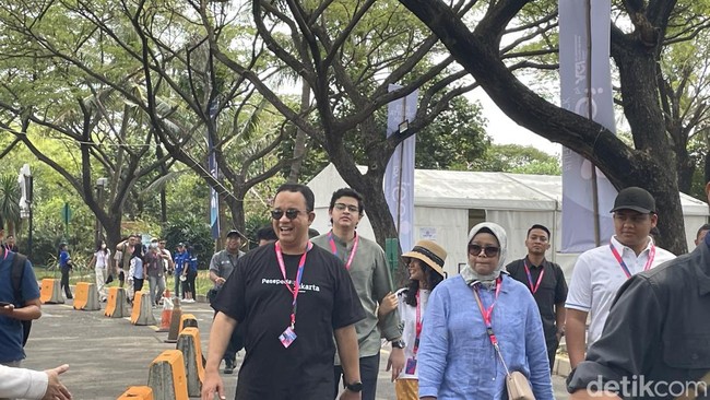 "Naik shuttle bus, parkir di Kemayoran, terus kita jalan nih barengan sama Fery istri saya, anak-anak, barengan, seru. Jadi kita datang bener-bener mau nonton aja," terang Anies.