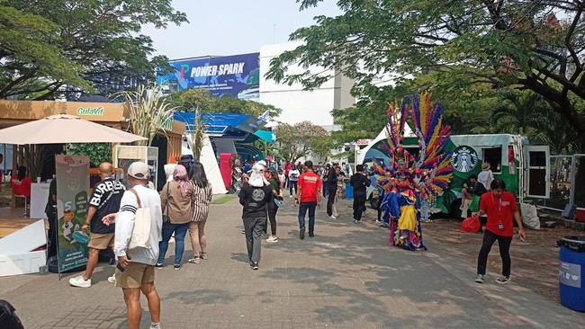 Terlihat pula sejumlah penonton mengambil foto pada logo Formula E yang ada. Para penonton juga memadati stan makanan yang tersedia.