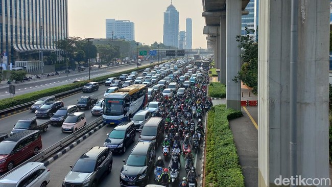 Pantauan detikcom di lokasi, Senin (5/6/2023) pukul 08.33 WIB, padatnya kendaraan terjadi di Jalan Gatot Subroto arah Slipi. Sementara itu, arus kendaraan di arah sebaliknya terpantau lancar.