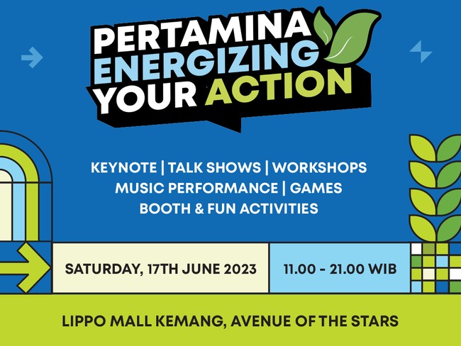 Melihat hal ini, Pertamina bersama CXO Media akan menggelar ajang 'Pertamina Energizing Your Action' di Lippo Mall Kemang, Jakarta Selatan pada 17 Juni 2022 pukul 11.00 WIB. Pertamina Energizing Your Action bertujuan untuk mengajak para milenial dan gen Z untuk menjadi agen perubahan dalam memitigasi perubahan iklim, demi keberlanjutan masa depan bumi.