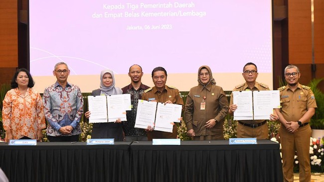 Penyerahan aset itu dilakukan di Kementerian Keuangan pada Selasa (6/6) disaksikan Menteri Keuangan Sri Mulyani Indrawati dan Menko Polhukam Mahfud Md. Ada total empat bidang yang lokasinya di Jalan H Saidin di Kelurahan Bambu Apus yang diserahkan secara simbolis ke Pj Gubernur Al Muktabar.