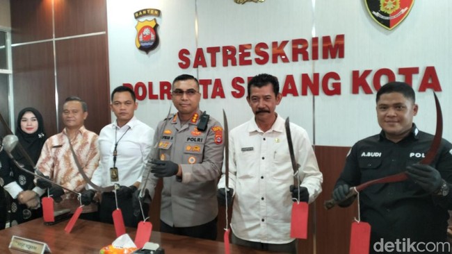 Sebanyak 15 orang siswa dari 3 SMKN di Banten diamankan Polresta Serang Kota. Empat orang dijadikan tersangka karena membacok tiga orang.